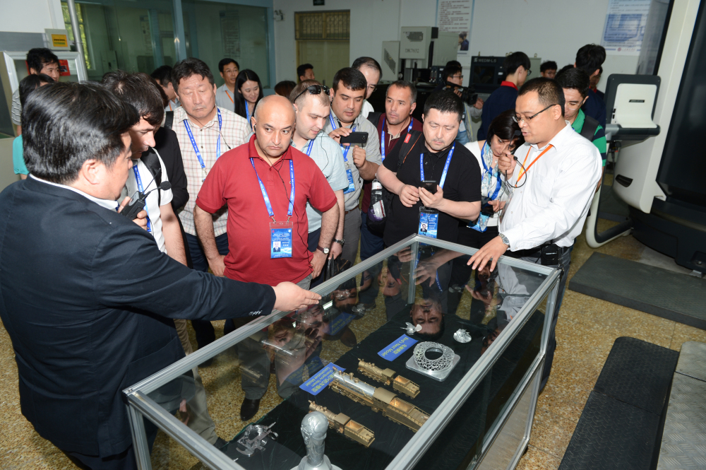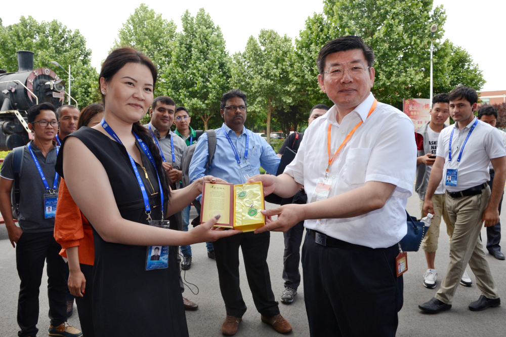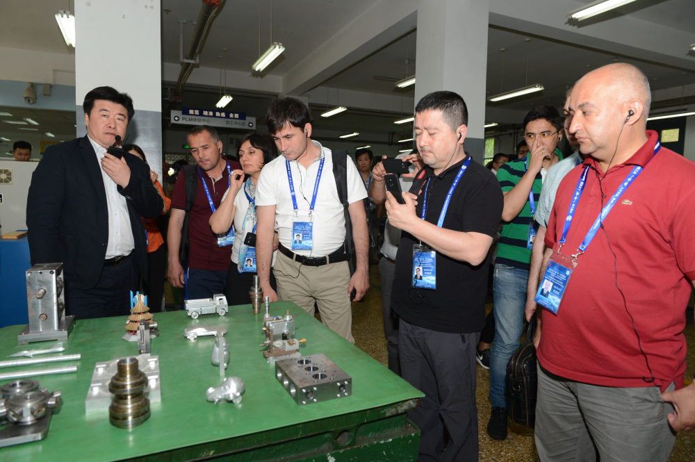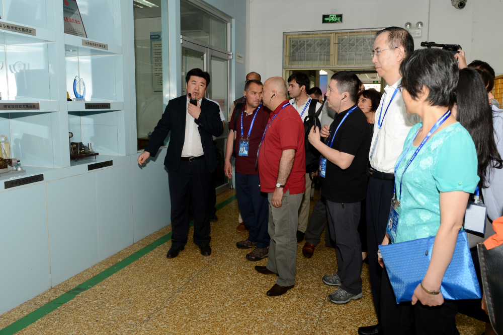 今年6月9日至10日,上海合作組織成員國元首理事會第十八次會議將在山東青島舉行。作為我國重要的主場外交活動之一,上合峰會備受矚目。5月29日,中國工會“一帶一路”人文交流——上合組織國家職工技能交流營代表團一行27人在中國職工對外交流中心國際聯絡處處長何際霞、副處長毛麗娜,山東省總工會副主席李臻,山東職工對外交流中心主任白明的陪同下,到我院參觀訪問。山東省委教育工委委員,省教育廳副廳長、黨組成員白皓,學院黨委書記王榮昌、院長秦河等陪同參觀。