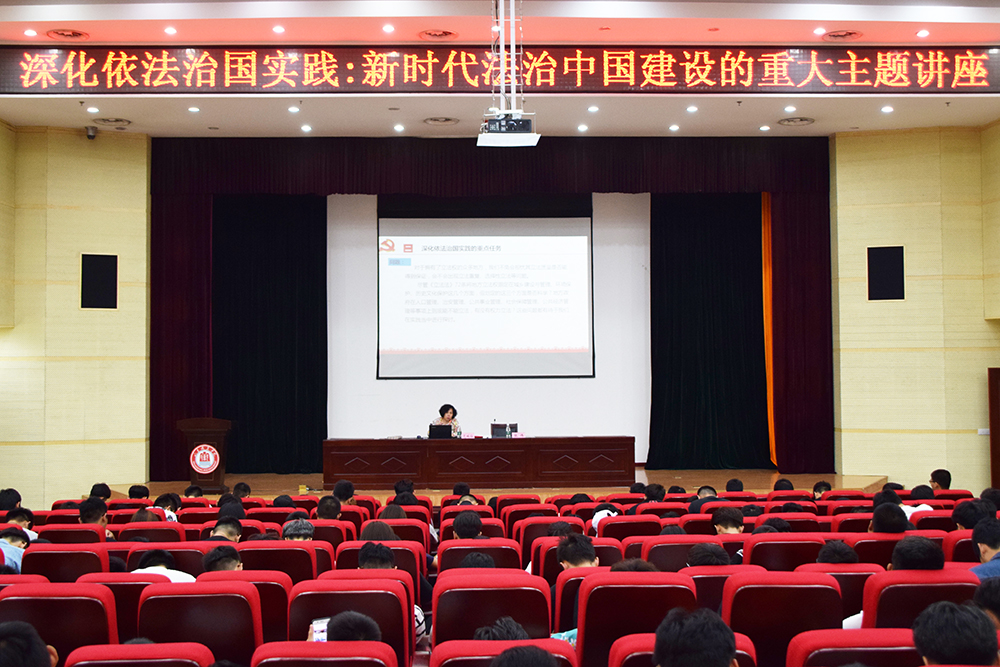 為深入學習貫徹習近平新時代中國特色社會主義思想和黨的十九大精神,5月23日,鐵道供電與電氣工程系舉辦“新時代法治中國建設的重大主題”講座,邀請基礎部(思政部)教師范瑞仙作《深化依法治國實踐》主題報告。系副主任張偉、代理團總支書記馮國英、基礎部(思政部)教師張燕青與學院近200余名學生參加報告會。
