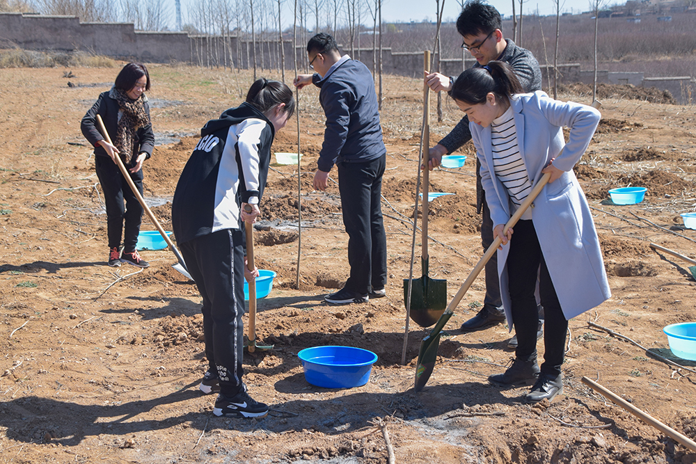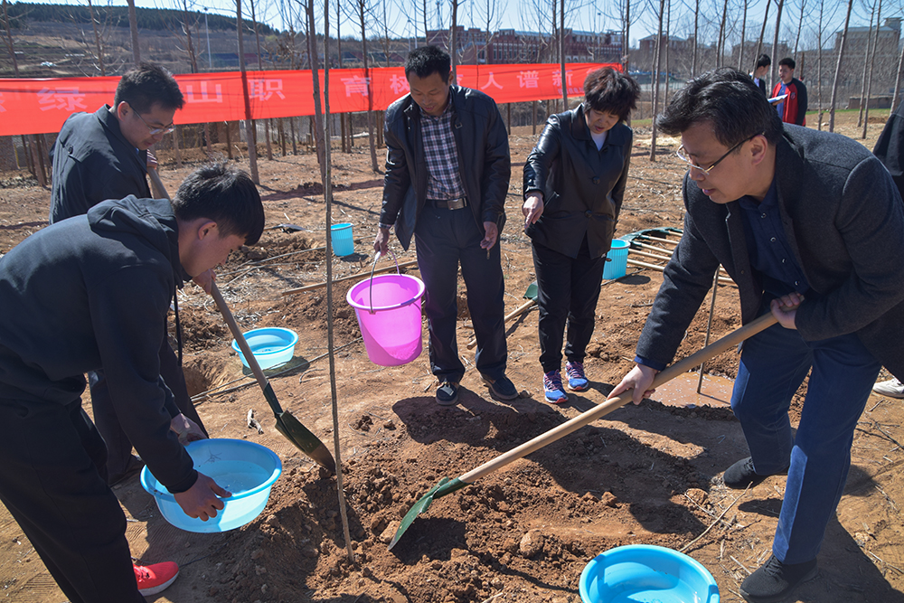 植樹現場,師生們干勁十足,分工協作。揮鍬鏟土、扶苗填坑、踩實澆水,每一道環節都做得一絲不茍,各個環節銜接有序、配合默契。大家揮灑著汗水,享受著勞動帶來的快樂,師生們還不時交流著對植樹造林、保護生態、綠色發展的看法。
