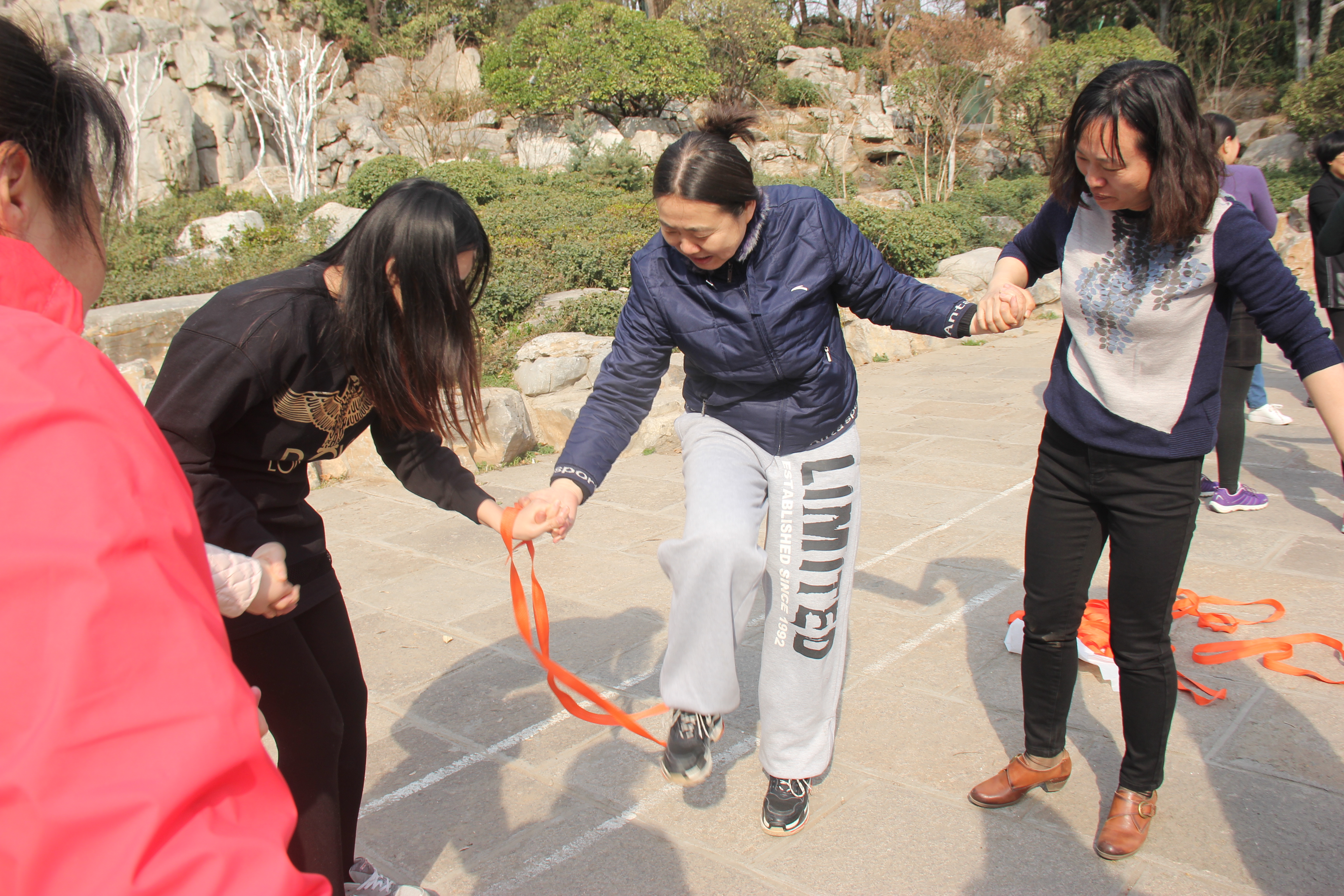 下午1點40分,全院二百余名女教職工精神飽滿地歡聚大明湖北極閣東側的自然舞臺廣場,活動在輕松愉悅的氛圍中拉開了序幕。學院副院長祝瑞花和工會副主席趙欣分別代表學院領導和工會組織向女教職工致以節日慰問。隨后,由張紅妮老師帶領大家進行了精心設計的拓展活動。巧解繩索這一環節趣味橫生,扣人心弦,由10位老師組成一組,需要大家通過齊心協力、天衣無縫地巧妙配合才能勝利完成,經過短暫地練習,老師們各個身手矯健,那優美的身姿、靈活的動作引起大家一陣陣歡呼和驚嘆。