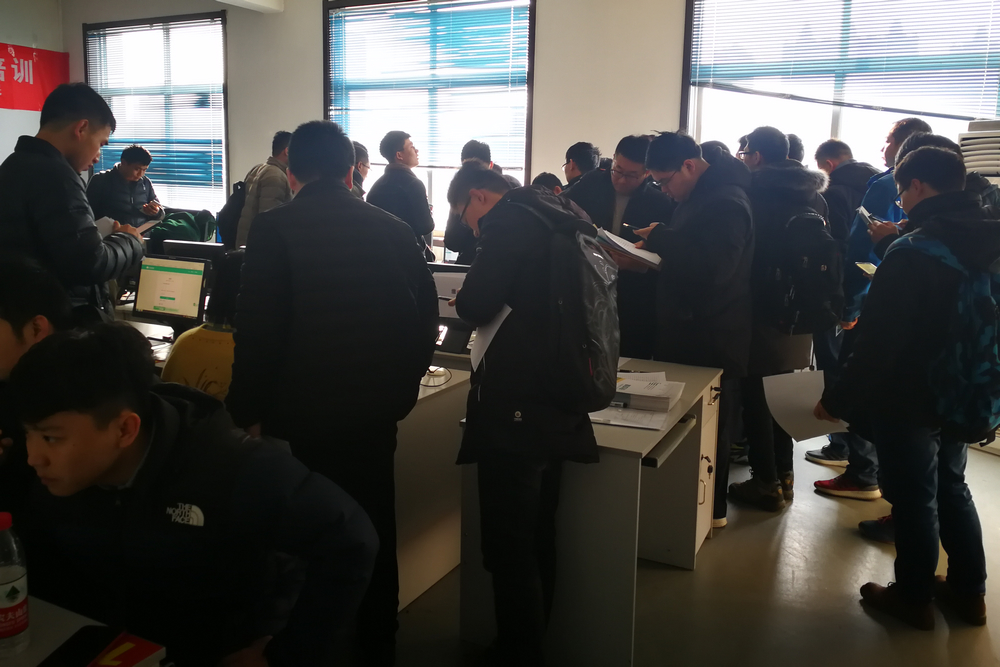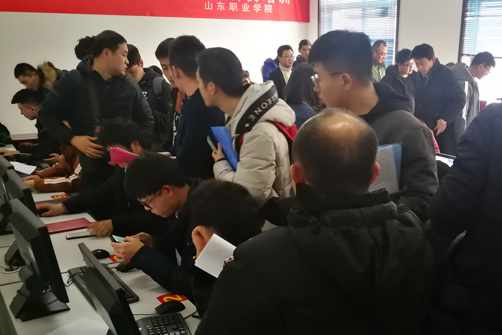今年網上報名突破900人次,報名人數比去年增長了一倍,生源主要來自中國鐵路濟南局集團有限公司。報名確認和通過材料審核的595人,信息確認現場人潮涌動,3個機房仍然不能滿足需求,9名老師在現場不停錄入和審核材料。今年濟南局計劃指標為100人,錄取難度堪比高考。