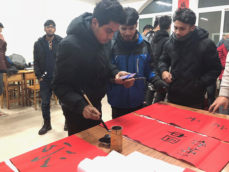 為慶祝元旦佳節的到來,近期,鐵道工程與土木工程系舉辦了“寫對聯,慶新年”活動,外國留學生受邀也參加了本次活動。