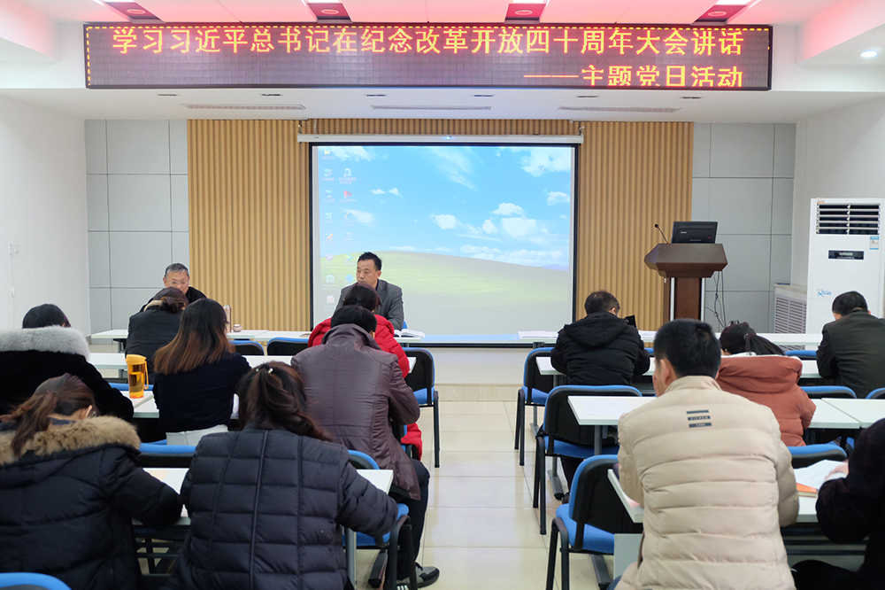 12月20日,鐵道運輸與財經管理系黨總支舉辦主題黨日活動,黨員、教職工集體學習習近平總書記在中央改革開放四十周年大會上講話。