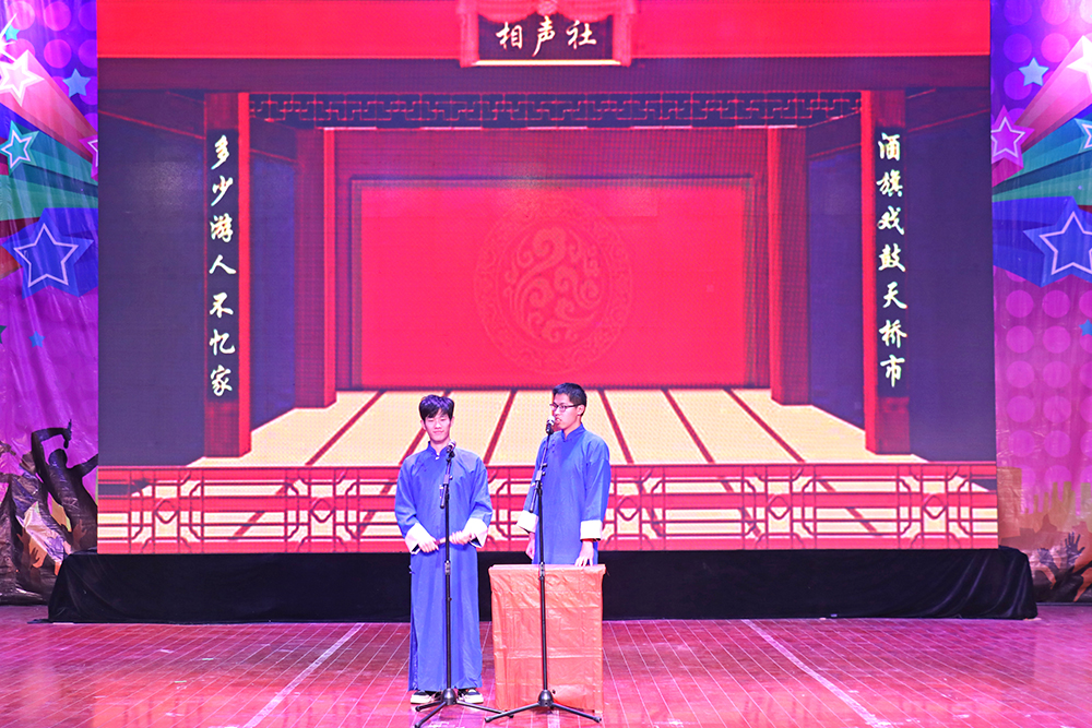 觀眾們欣賞晚會的同時,舞臺兩側的微信墻成為同學們表達祝福、抒情感懷的橋梁,悄無聲息中拉近了同學們的距離,為晚會助力添彩。晚會最后在所有表演者傾情演唱的《相親相愛》中緩緩落下帷幕。