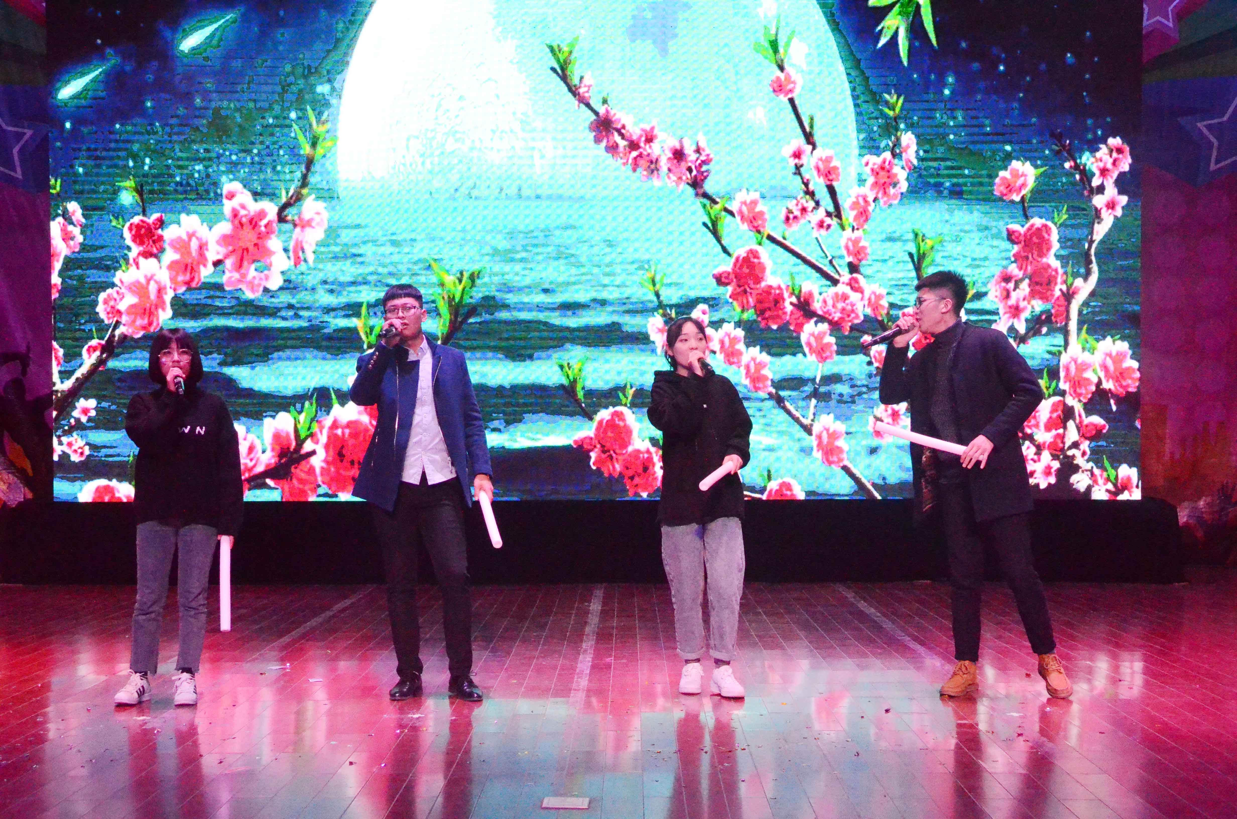 極具創意的小品《人在囧車》《中國富人秀》《青春校園你懷念嗎》趣味盎然,用詼諧幽默的表演,展現出了現在社會真實的一面,在給大家帶來歡笑娛樂的同時也引人深思;晚會最驚喜的莫過于抖音歌曲串燒以及舞蹈串燒,一首首經典歌曲感動全場,一個個舞蹈震撼人心。微信互動、游戲環節更是為晚會增添了許多亮點,使晚會氛圍達到了活躍的頂峰。場上的觀眾歡呼雀躍、激情四射。整場晚會內容流行與古典兼收,溫情與火熱并舉。在歌曲《相親相愛》的動感旋律中,領導老師上臺與全體演員合影留念,晚會在和諧、歡樂、美好、融洽的氛圍中圓滿結束。
