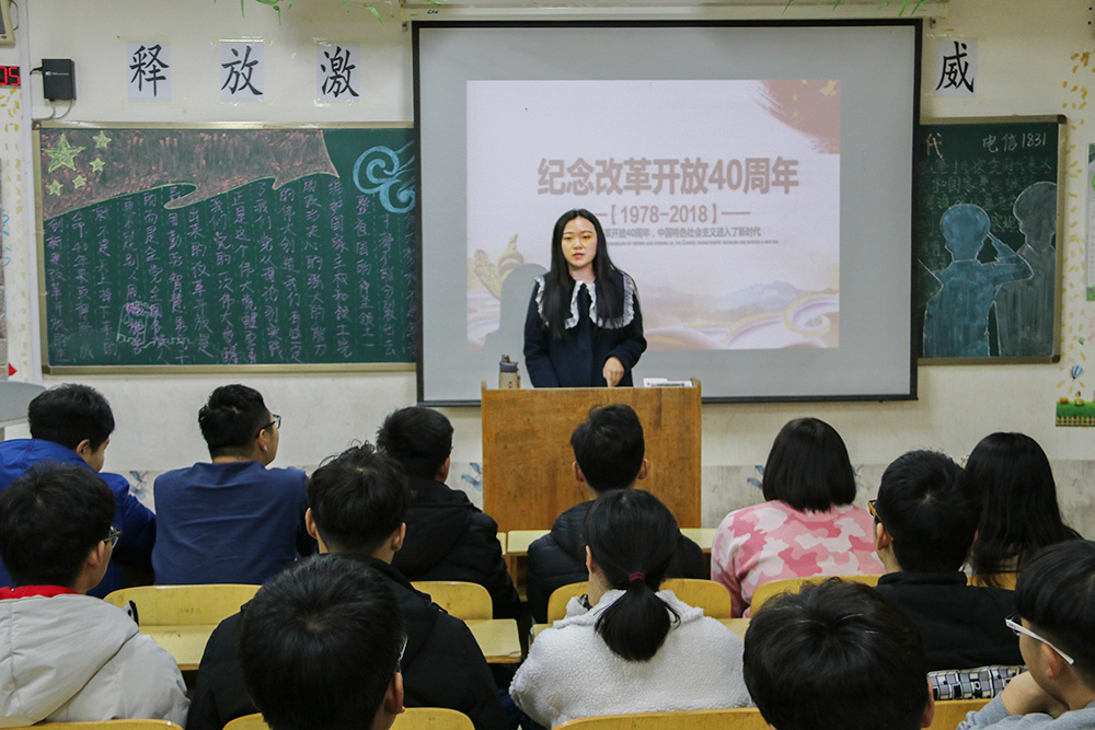 在主題班會上,同學們一致表示,一切偉大成就都是持續奮斗的結果,一切偉大事業都需要在繼往開來中推進。改革開放四十年來在各個領域取得的巨大成就和各行各業涌現出的先進人物,激勵著我們開拓進取、奮力前進。作為新時代青年學子,我們要刻苦努力學習文化知識,在未來改革開放的道路上與時代并肩前行,用知識的力量肩負歷史重任,為國家的偉大事業奉獻自己的青春力量。