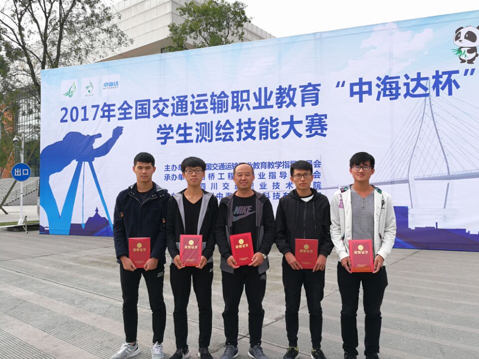 10月14日至15日,2017年全國交通運輸職業教育“中海達杯”學生測繪技能大賽舉行,我院選派由鐵道工程與土木工程系呂安嶺、李偉為指導教師、2015級道路與橋梁工程專業王皓、李猛、程曉東、陸文龍四位同學組成的代表隊參加了競賽,并最終獲得團體三等獎。