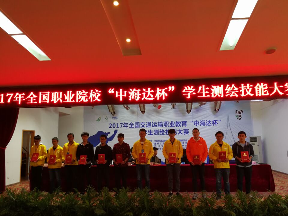 全國交通運輸職業教育“中海達杯”學生測繪技能大賽由全國交通運輸職業教育教學指導委員會主辦,路橋工程類專業指導委員會、四川交通職業技術學院承辦。來自全國26個省、42所中高職院校的255名教師和280名同學參加了本次大賽。本次大賽,學院高度重視,代表隊師生在賽前用心練習、肯于鉆研,表現出良好的學習精神和團隊合作意識。在比賽中,他們根據賽前部署,沉著應戰、穩扎穩打,順利完成了理論測試比賽和實作技能比賽,展現了扎實的專業知識和較強的創新能力和實踐能力。