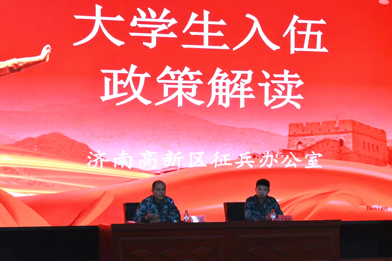 為貫徹新時代強軍思想,響應國家大學生征兵號召,激發學生應征入伍的熱情。6月8日下午,我校在西報告廳召開2023年秋季征兵政策宣講會,邀請濟南市高新區武裝部征兵辦公室參謀李冰、王墨源作宣講,學生工作處相關負責人員、有意愿應征入伍的學生代表參加。