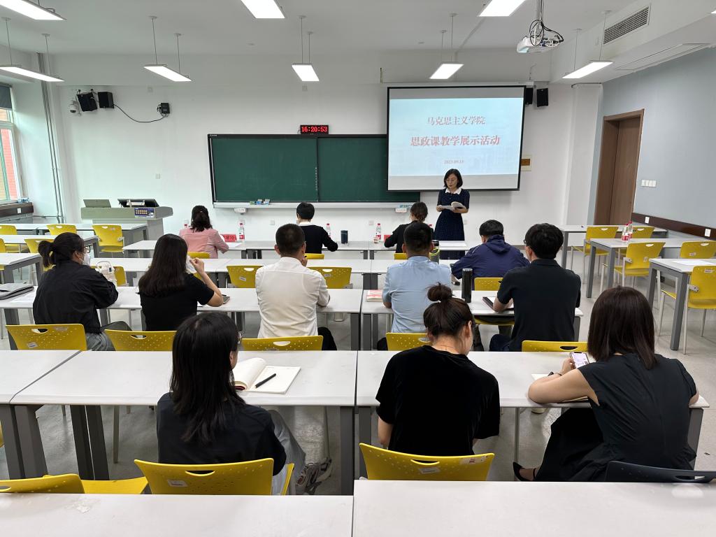 為進一步提高青年教師的教學水平和能力,促進教師之間的交流和互動,9月15日,我校馬克思主義學院在教學樓5409舉辦了教學展示活動。邀請山東商業職業技術學院馬克思主義學院院長王岳喜,山東旅游職業學院思想政治理論課教學部主任曹常玲,齊魯工業大學(山東省科學院)教師、青春健康教育主持人周珊珊擔任評委。學校馬克思主義學院院長楊慧及學院全體青年教師參加。
