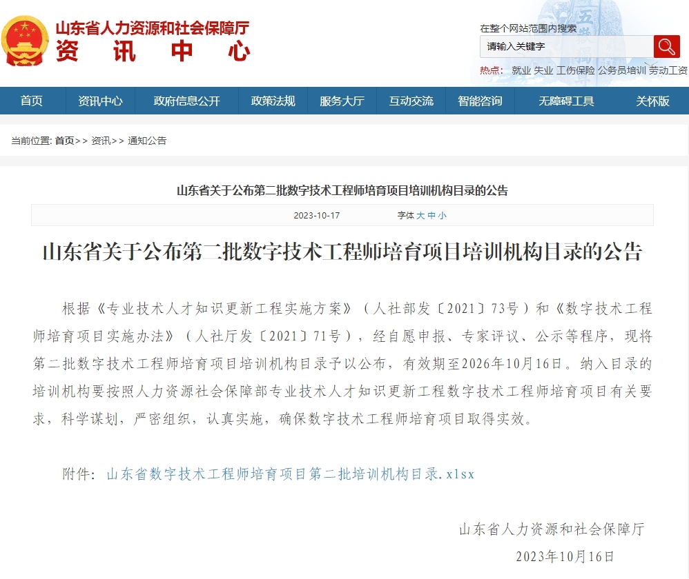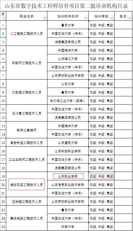 近日,山東省人力資源和社會保障廳公布了第二批數字技術工程師培育項目培訓機構目錄公告,我校繼續教育學院與新一代信息技術產業學院聯合申報的虛擬現實工程技術人員(初級、中級、高級)成功入選。全省共有13家單位入選,我校為4家入選高職院校之一。