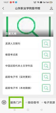 微信公眾號的功能主要分為三部分:服務門戶、微信借書、電子資源。
