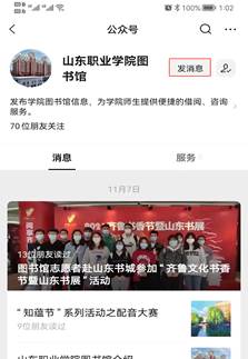 1.微信搜索“山東職業學院圖書館”公眾號并關注或掃描下方二維碼關注。