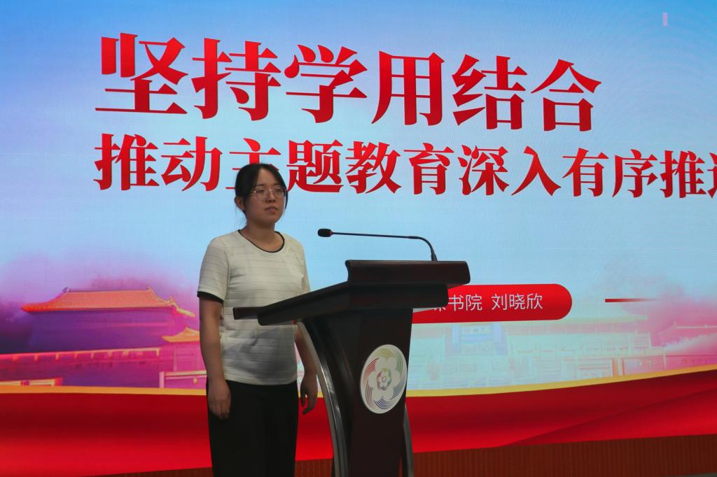 劉曉欣以《堅持學用結合,推動主題教育深入有序推進》為題開展培訓,從習近平新時代中國特色社會主義思想的科學體系、精髓要義、實踐要求等方面希望學員堅持學用結合、以學促干,努力實現新時代青年學生的使命與擔當。