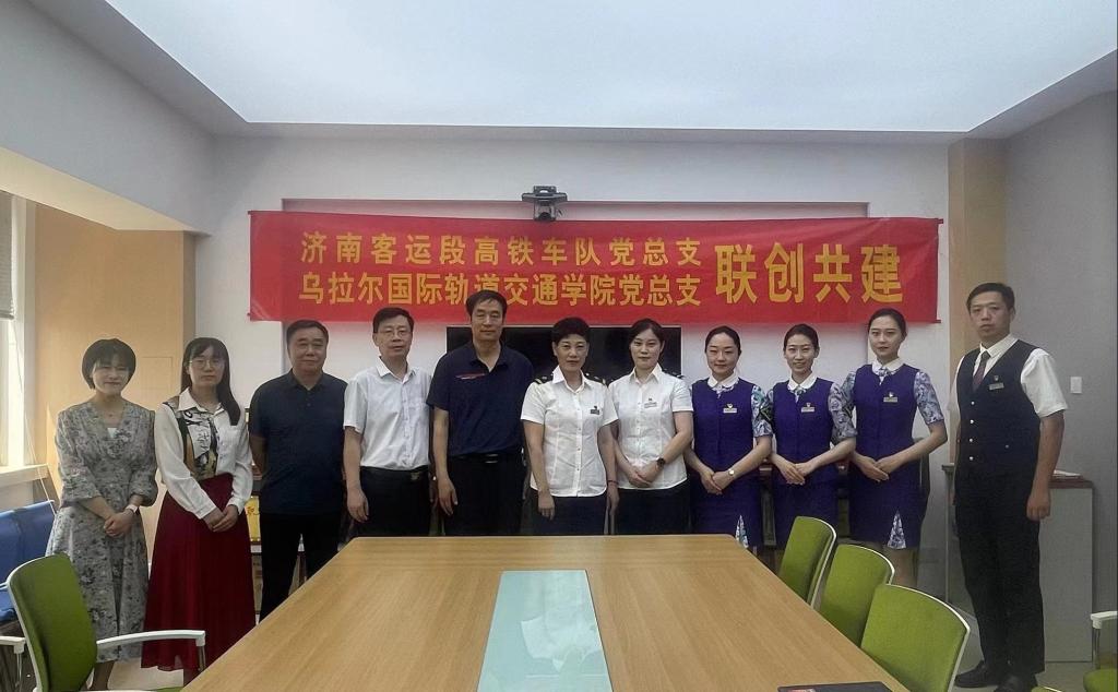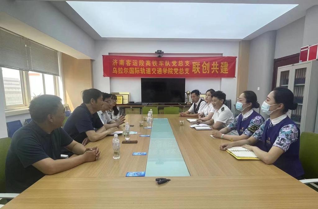 為深入貫徹黨的二十大精神,推動學習貫徹習近平新時代中國特色社會主義思想主題教育走深走實,落實中國鐵路濟南局集團-山東職業學院產教融合共同體建設任務,以高質量黨建引領事業高質量發展,6月23日,我校烏拉爾國際軌道交通學院第二黨支部與中國鐵路濟南局集團濟南客運段高鐵一隊黨總支第一黨支部開展黨建聯創共建活動。