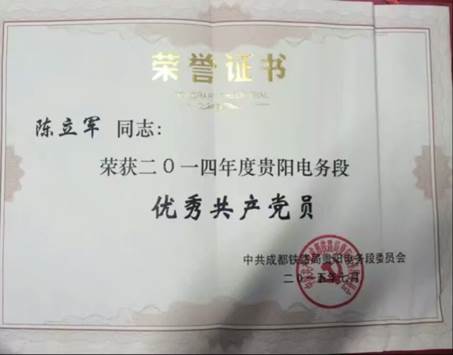 陳立軍任職于成都鐵路局貴陽電務段,貴陽東信號車間高速鐵路信號工,維護高鐵電務設備.