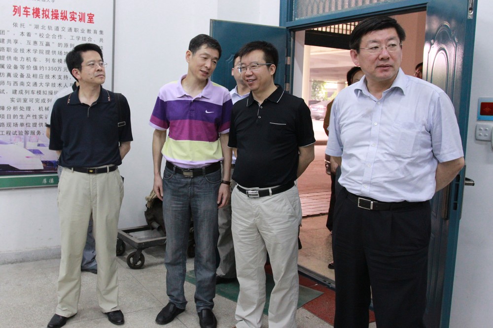 6月12日,我院黨委書記王榮昌、院長秦河、副院長徐冬一行四人到武漢鐵路職業技術學院訪問交流,該校黨委書記劉大洪、院長程紅兵熱情接待。劉大洪、程紅兵介紹了武漢鐵路職業技術學院的發展歷史、鐵路辦學特色、專業設置情況以及招生就業方面的工作,并帶領參觀了該校列車模擬操縱實訓室、高速鐵路安全警示與事故救援培訓中心、動車組仿真駕駛與檢修實訓基地等實訓室。