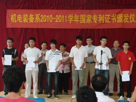展會開始前,機電系舉行了該系本學期國家專利證書頒發儀式。儀式上,與會嘉賓為機電獲得國家專利的部分同學頒發了證書。隨后,徐冬副院長發表重要講話。徐院長首先肯定了機電系在構建廣泛普及、重點引導、項目孵化的學生創新培養體系方面取得的成績,并簡要總結了近年來我院在推進大學生創新和知識產權工作方面取得的成就。他指出,內涵發展和創建國家骨干高職院校的發展形式對我們的工作提出了更高的要求,我們必須進一步突出創新工作在學生工作中的重要性,進一步提升學生創新工作的質量和水平,用更加豐碩的成果為學院的改革和發展做出貢獻。