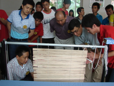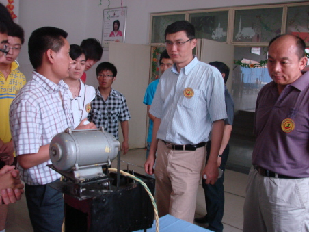 隨后,徐冬副院長和各位嘉賓一起興致勃勃參觀了展覽。在新型風力發電機的模型前,在節能強光手電筒的樣品和圖紙前,每到一處徐院長都與同學們親切交流,并對他們的創新精神和動手能力給予了充分的肯定。利用電壓產生負氧離子進而除臭的鞋盒、利用紅外線感應原理,人來即開、人走即停的節能電梯等作品成為展會上大家關注的焦點。在短短一個小時的展覽中,共有400余人次入場參觀,場面十分熱烈。