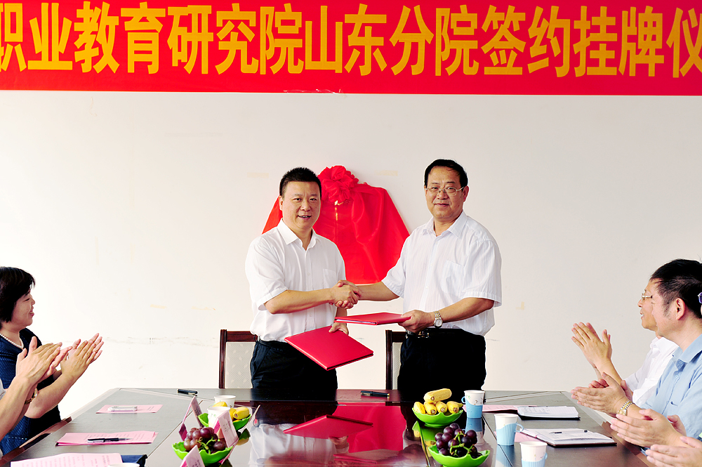 8月10日,中國亞龍科技集團與山東職業學院校企合作簽約暨亞龍職業教育研究院山東分院簽約掛牌儀式在山東職業學院舉行。亞龍集團董事長陳繼權先生、亞龍集團山東辦事處經理陳闖先生、山東職業學院院長鄧洪基、副院長祝瑞花、紀委書記祝介安等出席簽約儀式。簽約掛牌儀式由學院黨委副書記、常務副院長馬文卿主持。學院各系部和相關處室的負責同志也參加了此次簽約活動。