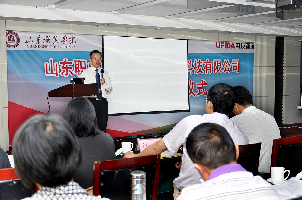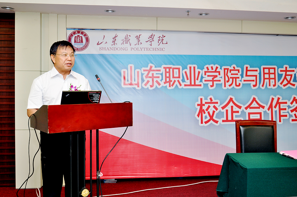 馬文卿在主持儀式時談到,作為國家骨干高職院校建設立項單位,山東職業學院一直秉承“團結、勤奮、求實、創新”的校風,堅持“以服務為宗旨,以質量為核心、以就業為導向”的辦學方針,按照職業教育“開放性、職業性、實踐性”的要求,高度重視學生職業能力的培養,以“校企共建、資源共享”為原則,積極與企業合作建設校內實驗實訓室,建設“投資多元化、產品市場化、管理企業化、學習工作化”的校內生產性實訓基地,共同開發建設校外實訓實習基地,為學生順利就業,零距離上崗提供了保障。馬文卿指出,此次與亞太地區最大的管理軟件和服務提供商用友集團合作,是共進,是雙贏,并衷心祝愿校企合作不斷加深,樹立學院校企合作另一典范。