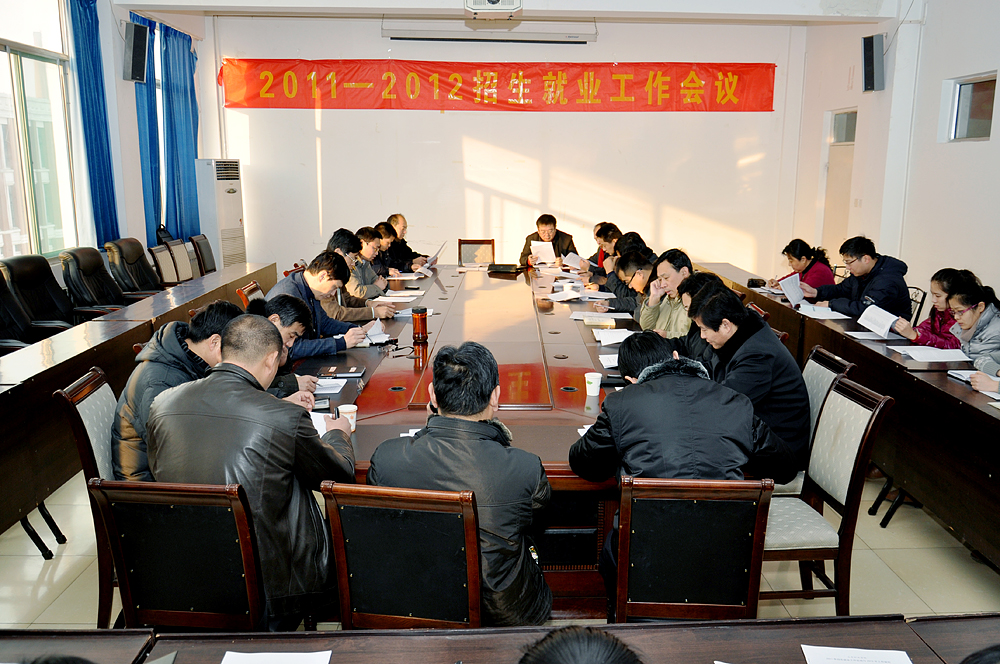 1月6日上午,山東職業學院召開2011-2012招生就業工作年度會議。學院黨委副書記、常務副院長馬文卿出席會議,會議由副院長徐冬主持。學院各系主任、書記、就業辦主任、大三輔導員及教務處、學生處領導參加會議,聽取招生就業辦主任張少飛做工作情況報告。