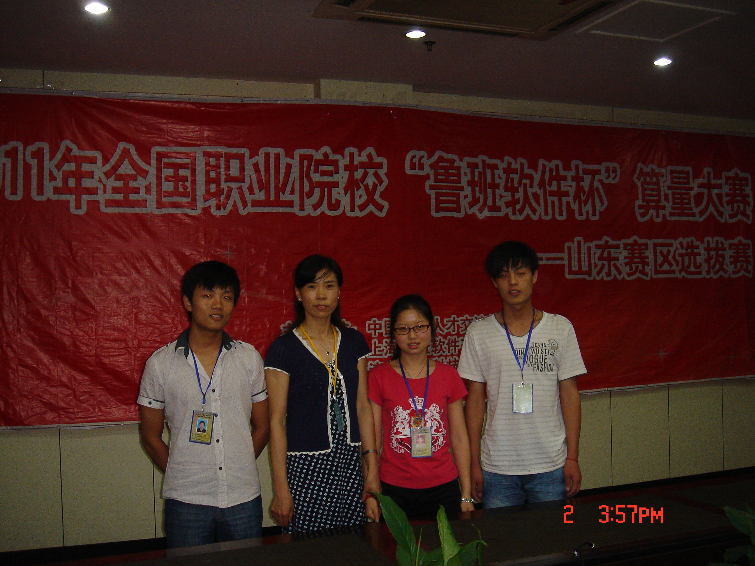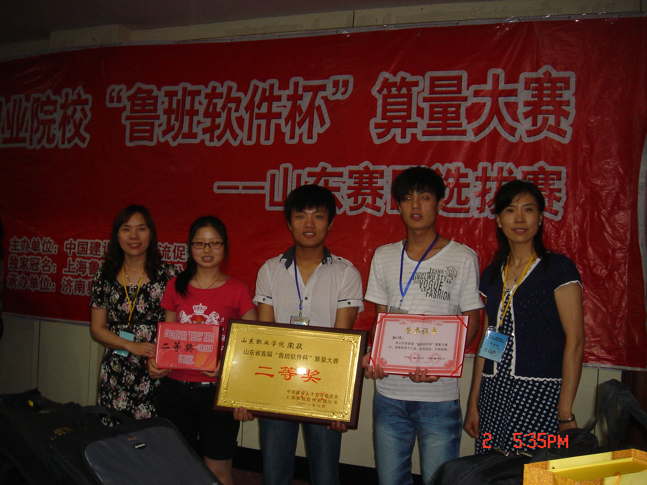 山東職業學院土木系工程造價專業09級學生張愷、程業彬、鄒紹輝代表我院參加2011年全國職業院校“魯班軟件杯”山東賽區選拔賽并獲得團體二等獎,展示了扎實的專業技能和良好的綜合素質,為我院爭得了榮譽。