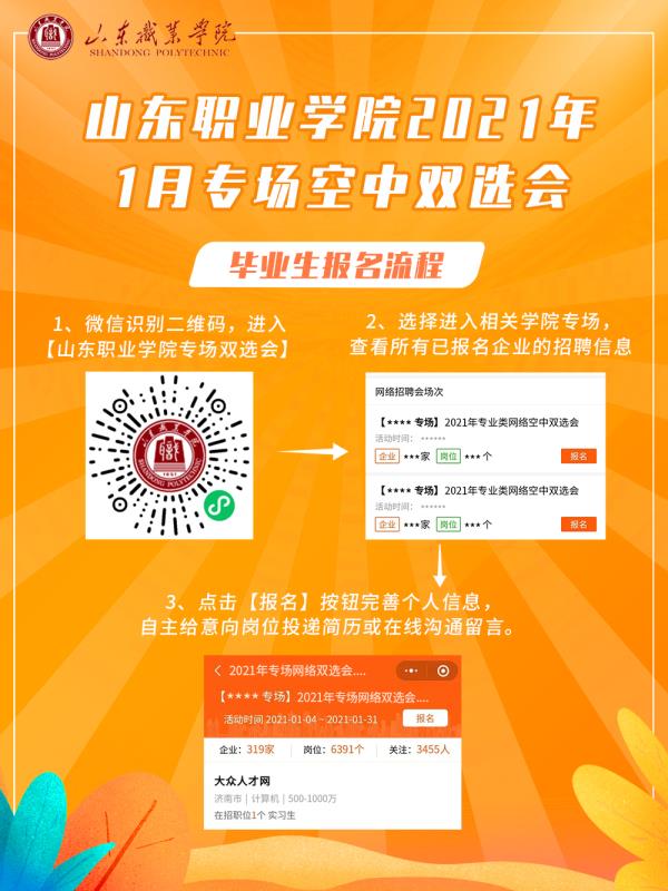 山東職業學院2021年1月專場空中雙選會 畢業生報名流程