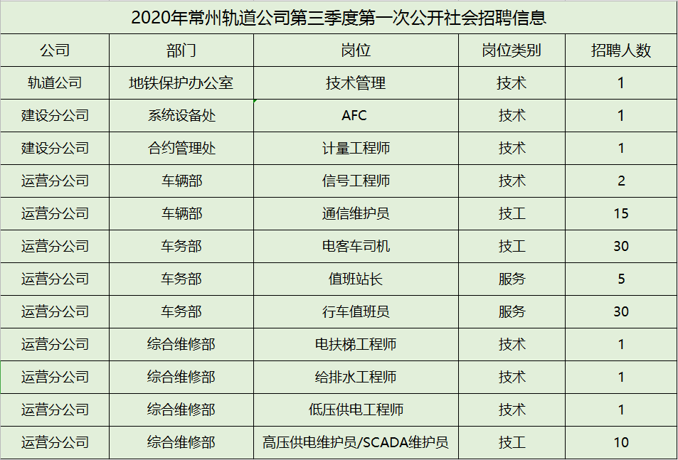 常州市軌道交通發展有限公司是經中共常州市委、常州市人民政府批準組建的直屬國有企業,2012年正式成立。公司主要承擔軌道交通規劃、建設、運營、資源開發等工作。因工作需要,特招聘以下崗位人員。