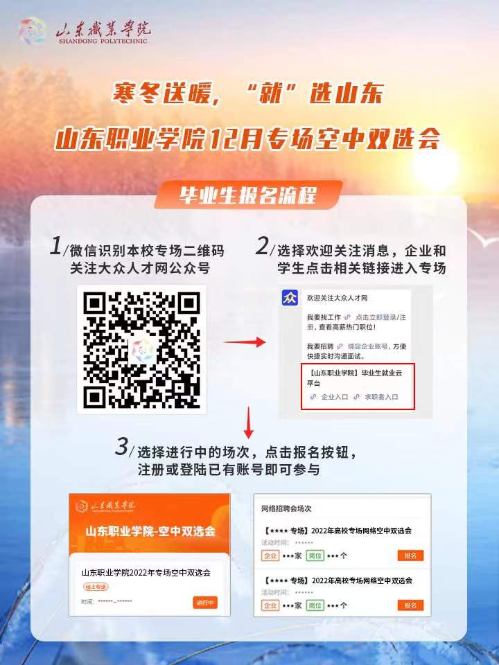 寒冬送暖 “就” 選山東--山東職業學院空中雙選會12月專場報名流程圖