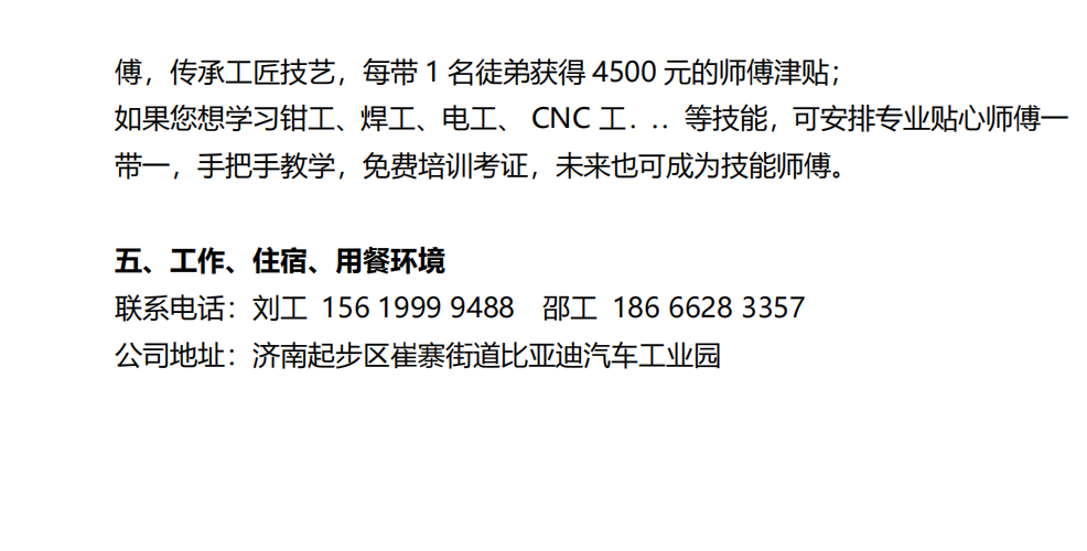 比亞迪公司關于后勤處濟南地區多個崗位招聘的公告