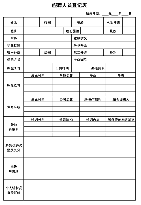 A、應聘人員登記表(附件1);
