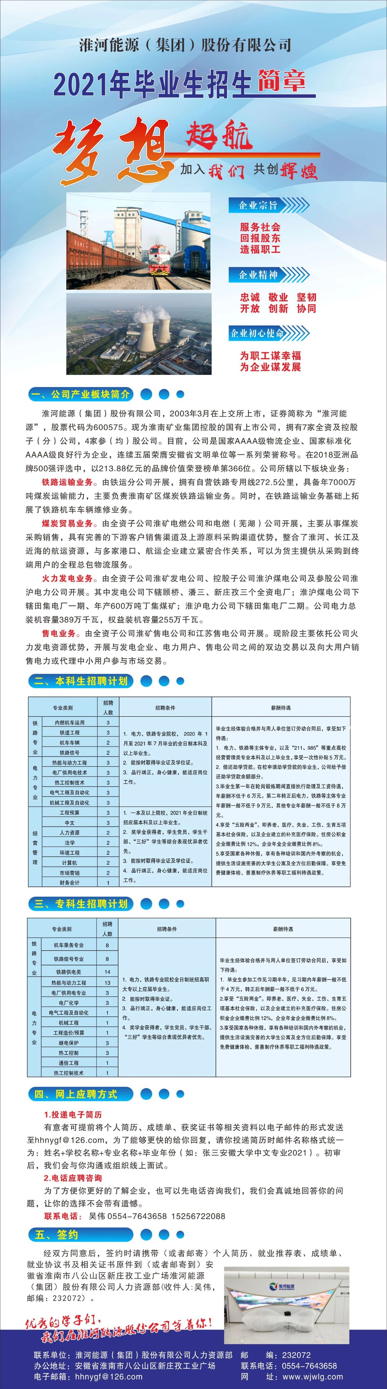 淮河能源(集團)股份有限公司2021年畢業生招生簡章
