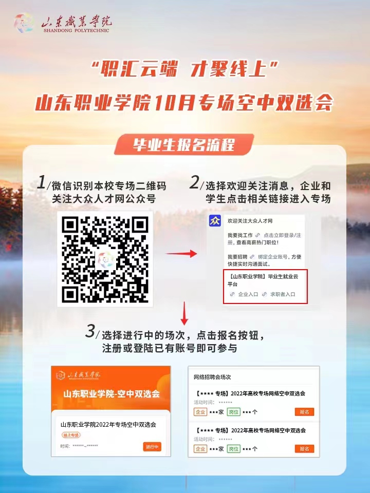 “職匯云端 才聚線上”山東職業學院10月專場空中雙選會報名流程圖