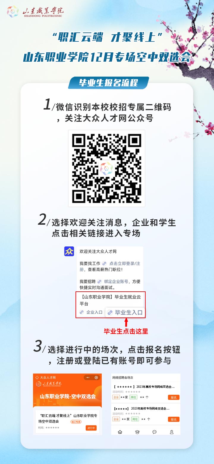 “職匯云端 才聚線上”山東職業學院12月專場空中雙選會報名流程