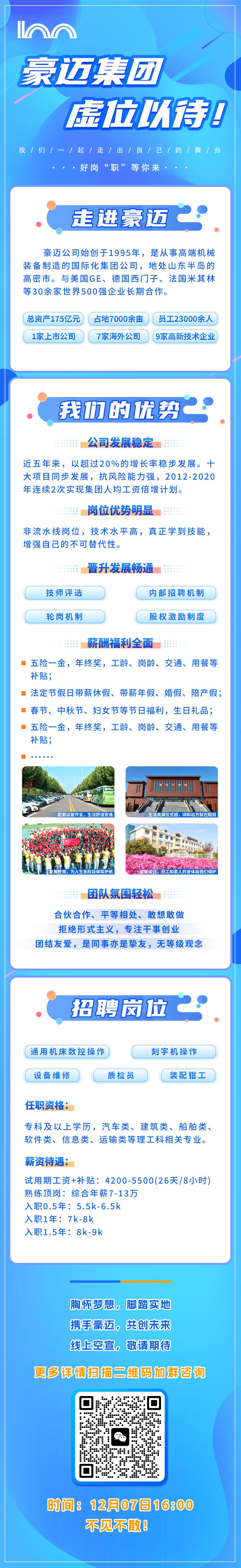 招聘崗位眾多:通用數控機床操作、裝配電工、質檢員、無損檢測等(更多崗位詳見“豪邁招聘”微信公眾號)