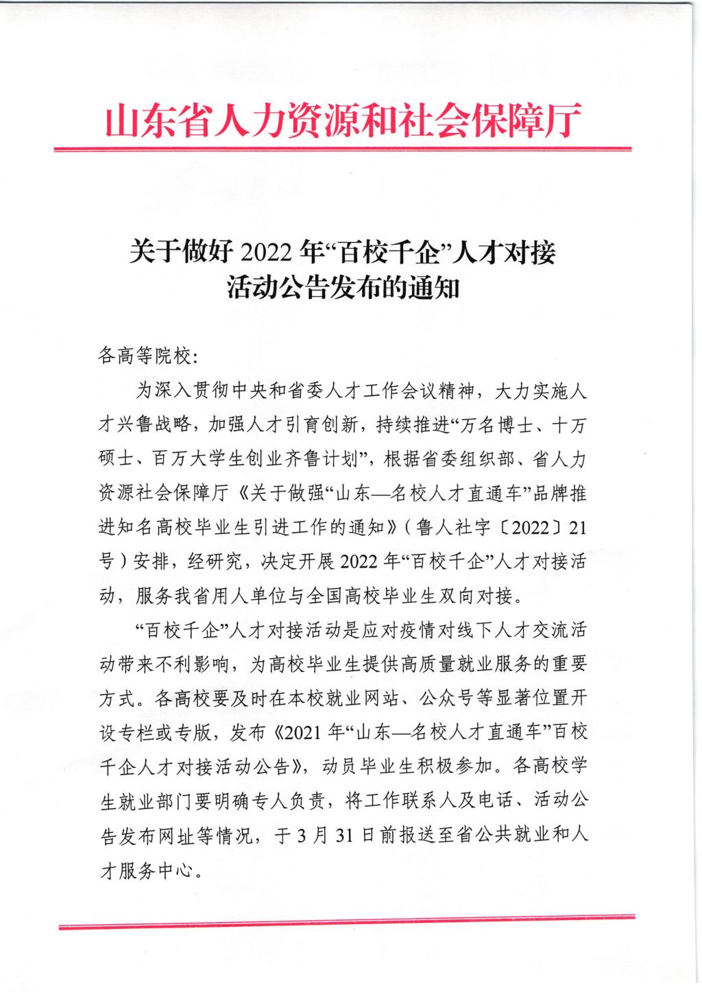 關于做好2022年“百校千企”人才對接活動公告發布的通知