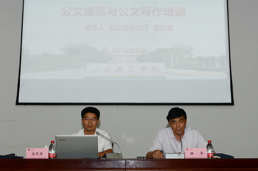 為進一步提高學院公文規范化和文字水平,推動文風轉變,提升工作效率和管理水平,6月28日下午,我院舉辦公文規范與公文寫作培訓,邀請省政府辦公廳副調研員寇紀東作專題培訓。學院黨委副書記徐冬主持活動,全院副科級及以上干部、各處室(系部)無值守任務的管理人員、輔導員等參加培訓。