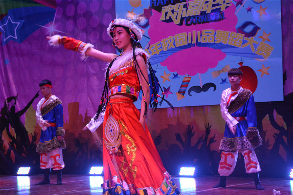晚會在一支唯美的藏族舞《雪山姑娘》中拉開帷幕,柔美的動作,輕快的舞步,無不展現出雪山姑娘的熱情豪放。隨后《青花瓷》《彩云之南》《牽絲戲》《雨霖鈴》四支舞蹈清新雅致,柔美溫婉,女同學們舉手投足之中,將山職女生的嫻靜淑美、活潑靈動演繹得淋漓盡致。舞蹈《歡欣鼓舞》,濃郁的民風,整齊的鼓點,粗狂的舞步彰顯的是山職學子的熱情與豪邁。《草原漢子》和《溜溜的康定溜溜的情》則是把觀眾帶入濃濃的民族風情之中。