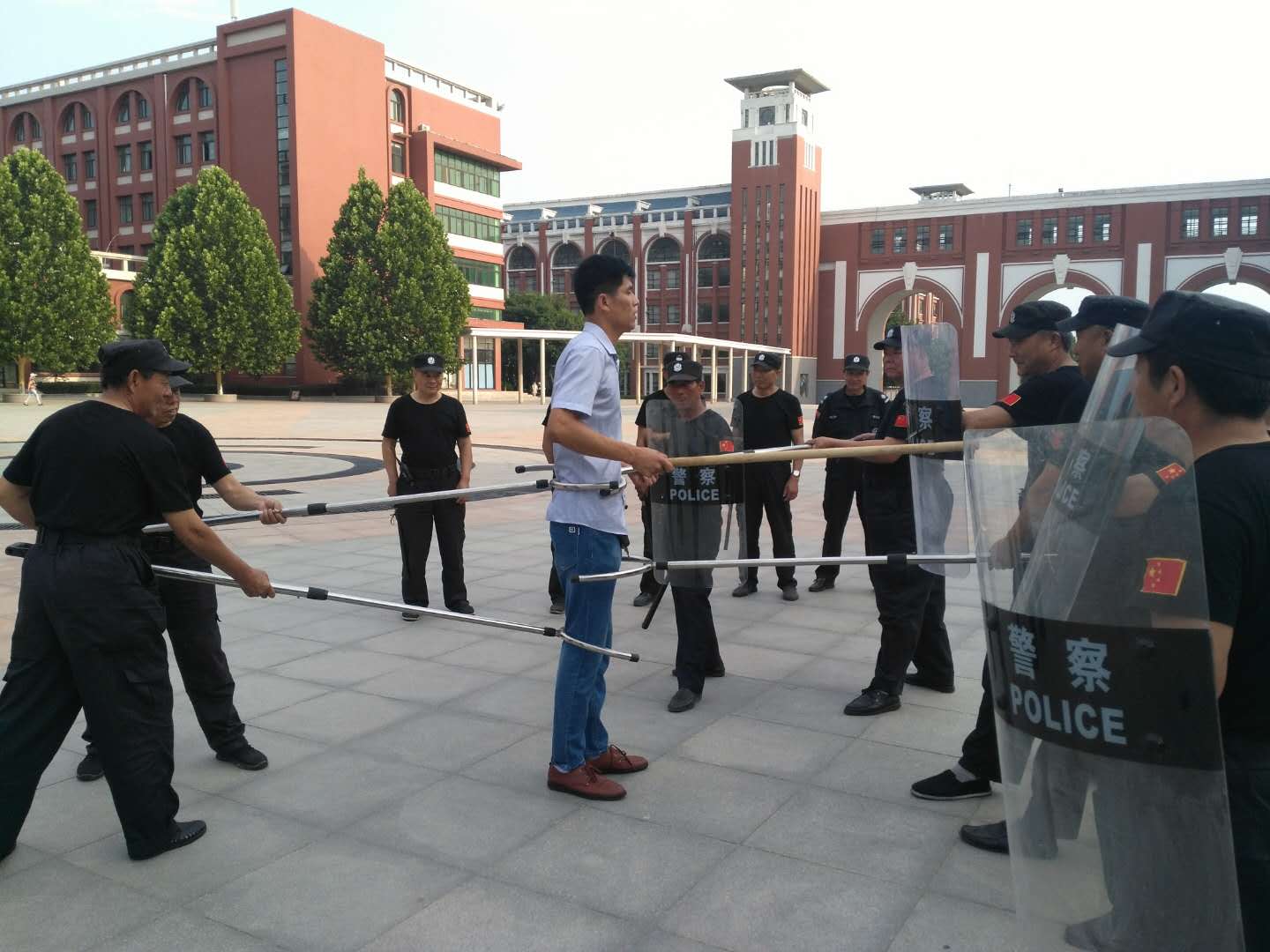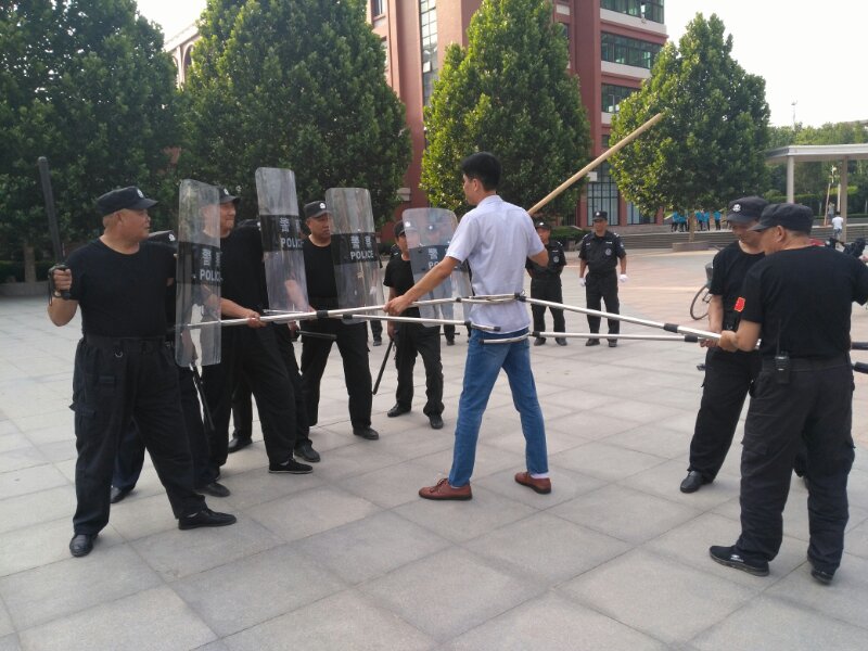 6月7日,我院組織開展反恐防暴安全演練活動。應急處突隊員展示了鋼叉、棍盾實戰對抗和應對突發事件的整體陣型攻防變化的演練,戰術明確、真打實練,充分展示了我院安保人員服從命令、聽從指揮的優良作風。