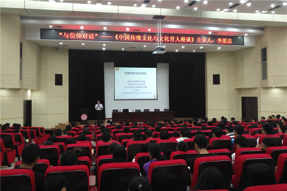 6月7日,由學院團委、學生處舉辦的“與信仰對話---中國傳統文化漫談”主題講座在圖書行政樓西報告廳舉行,知名學者、濟南大學馬克思主義學院李朋忠教授主講,副院長祝瑞花與現場近400名師生共同聆聽了講座。