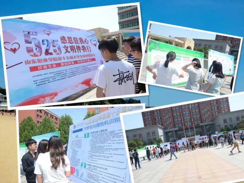 本屆心理健康節系列活動開展以來,在全院范圍內組織開展心理健康教育主題班會,各系黨總支書記、輔導員與班主任協同配合形成教育合力,極大地提高了心理健康教育工作覆蓋面,通過多種形式宣傳心理健康節相關活動,充分利用網絡平臺集中推送心理健康知識,傳播心理健康理念,發布心理健康主題活動通知,使心理健康工作的內容和活動隨時隨地出現在學生身邊。5月25日,我院青年大學生自發組織了心理健康節大型宣傳活動,在1200余名志愿者的努力下,在學院廣場排出了整齊規則的“525” “我愛我”六個字符,同學們通過這種方式表達和抒發出了珍愛生命、熱愛生活的感情和對健康心靈的期盼,體現了我院學子良好的精神風貌。