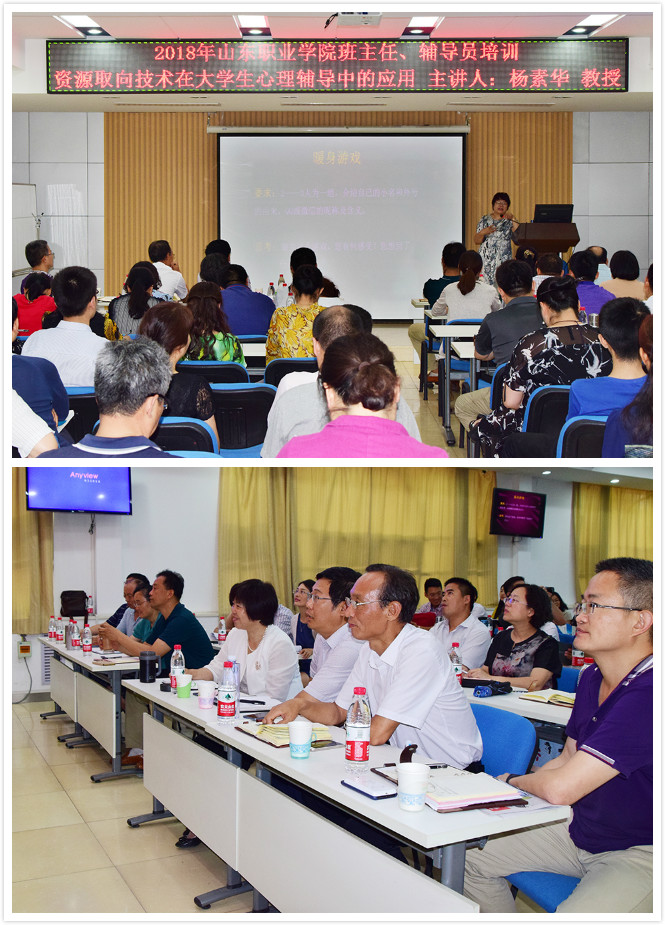 6月6日,我院舉辦輔導員、班主任心理健康教育專題培訓,培訓邀請山東省高職院校大學生心理健康教育師資培訓基地主任、山東商業職業技術學院心理健康教育中心主任楊素華教授作了題為“資源取向技術在大學生心理輔導中的應用”的專題講座。副院長祝瑞花及各系黨總支書記、學工辦主任、輔導員及班主任參加本次培訓。楊素華結合學生管理經驗和咨詢案例,詳細講解了大學生最常見心理問題及應對方式,結合典型案例展示了心理格板技術在大學生心理咨詢中的具體應用。通過開展心理健康培訓進一步深化了全體學工人員對心理健康教育工作意義、要求、方法的理解,為輔導員、班主任老師開展談心談話、心理疏導等學生工作提供了技術指導。祝瑞花在總結講話中強調了大學生心理健康教育工作的重要性,勉勵大家要認真學習心理健康教育知識與技能,不斷提升我院大學生心理健康教育工作水平。