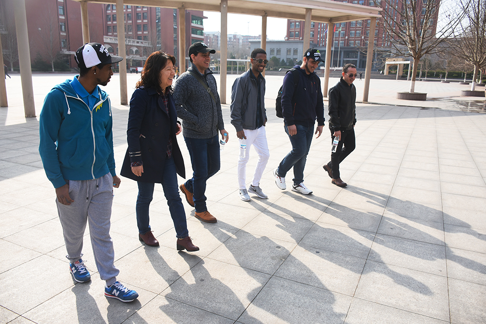 參觀學習完成后,留學生們與在校同學們進行了交流活動,他們一起學習中國文化、一起閱讀書籍、觀看中國的視頻介紹等等,并帶領同學們參觀了校園,一起去了小西湖、籃球場、操場等地方,讓他們對學習環境有了進一步的熟悉,他們紛紛掏出手機拍照留念,臉上露出微笑,表示對將來的學習環境很滿意。