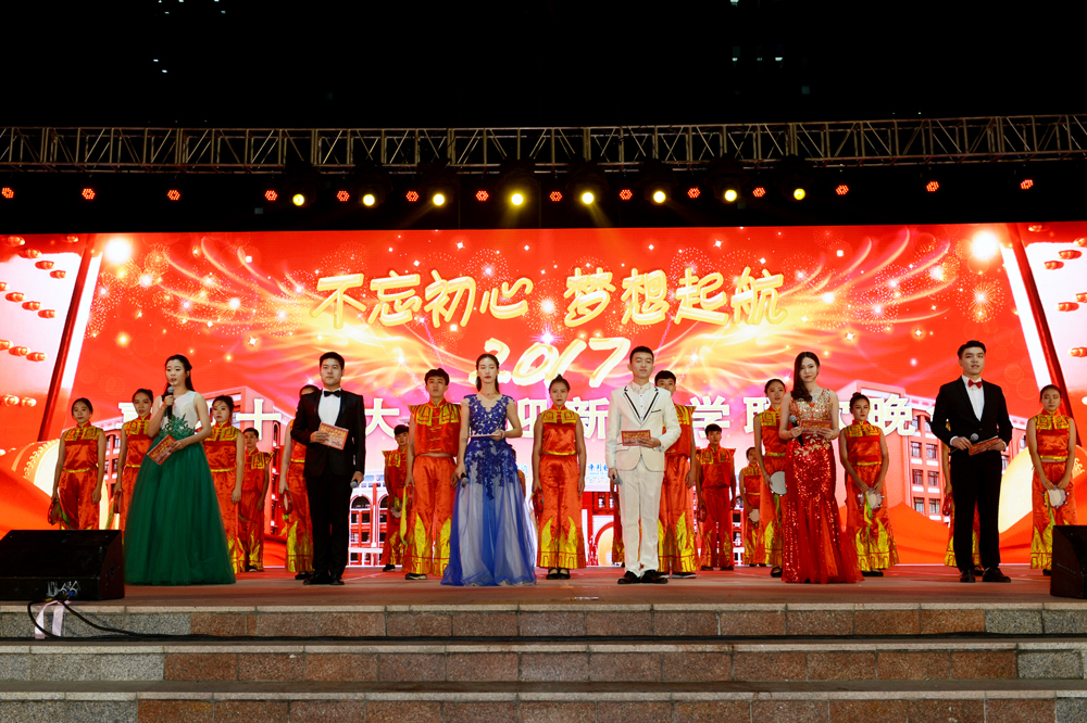 不忘初心跟黨走,青春喜迎十九大! 9月29日晚,我院2017年“喜迎十九大,歡迎新同學”聯歡晚會在中心噴泉廣場隆重舉行。