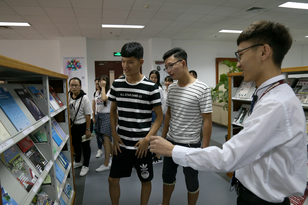 新落成的校史館位于圖書館行政樓9層,展廳分為三部分:前言及簡介,學院歷史沿革,系部設置。新生們排著整齊有序的隊伍,在講解員的引導下,認真參瀏覽每一塊展板和每一件展品,激動之余更忍不住拍照留念。結束校史館的學習后,新生們還依次參觀了圖書館的電子閱覽室、書庫、期刊閱覽室等部門,并了解了圖書館的相關規章制度。