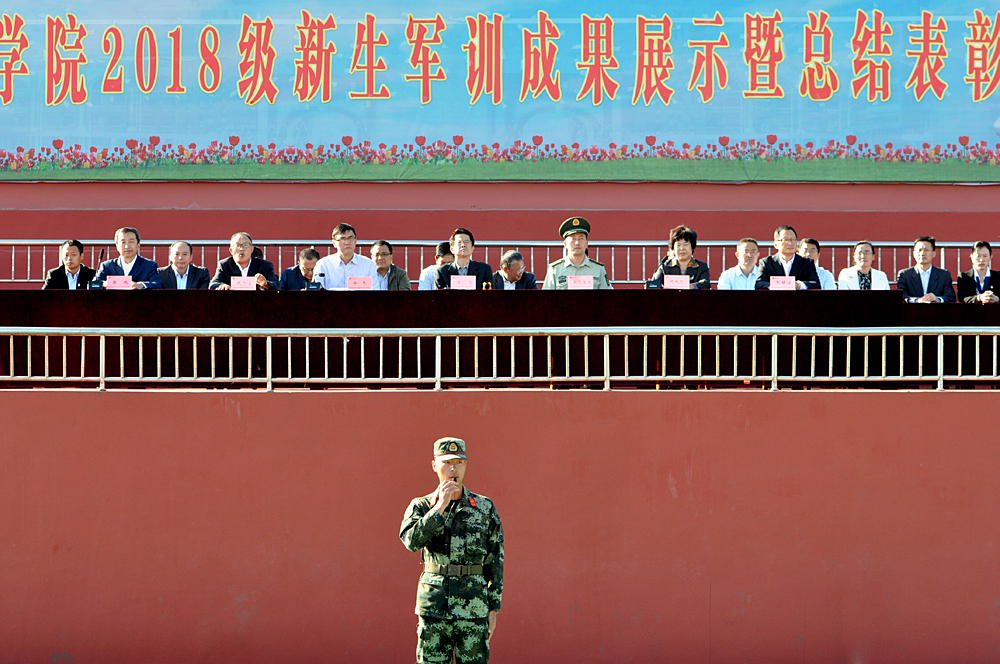 天高云淡,沙場點兵。9月30日上午,我院舉行2018級新生軍訓成果展示暨總結表彰大會。院長秦河、軍訓承訓部隊首長、黨委副書記徐冬、副院長祝瑞花、紀委書記祝介安、副院長郭培謙、副院長郭鵬,學院各系黨政負責人、有關處室負責人出席大會。大會由祝瑞花主持。
