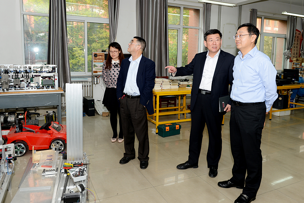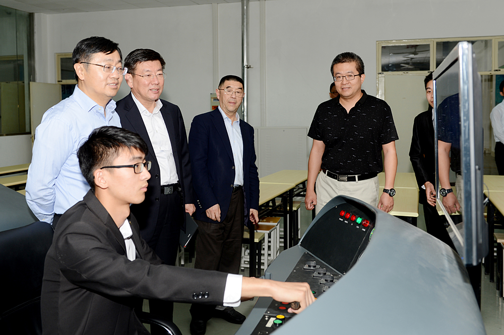 訪問期間,王榮昌陪同關延平、祝敏申一行參觀了數控加工車間、激光雕刻工作室、通信技術實訓室、SMT實訓室、機器人創新實訓室和軌道交通實訓場等實驗實訓場所。