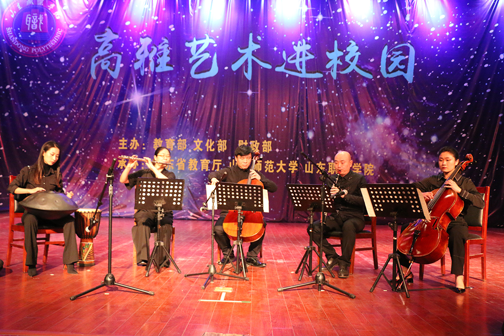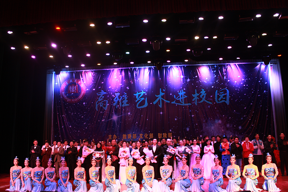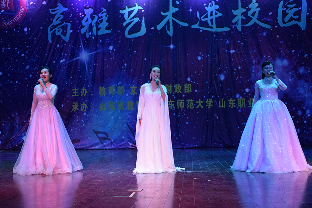 近日,由教育部、文化部、財政部聯合舉辦,山東省教育廳、山東師范大學以及我院承辦的“高雅藝術進校園”——山東師范大學藝術團走進山東職業學院活動在南益館舉行。省教育廳體衛藝處處長孫樂為、山東師范大學博士生導師萬光俠、學院黨委書記王榮昌、副院長祝瑞花、紀委書記祝介安、副院長郭培謙等領導出席晚會,與現場2000余名師生共同欣賞精彩節目。