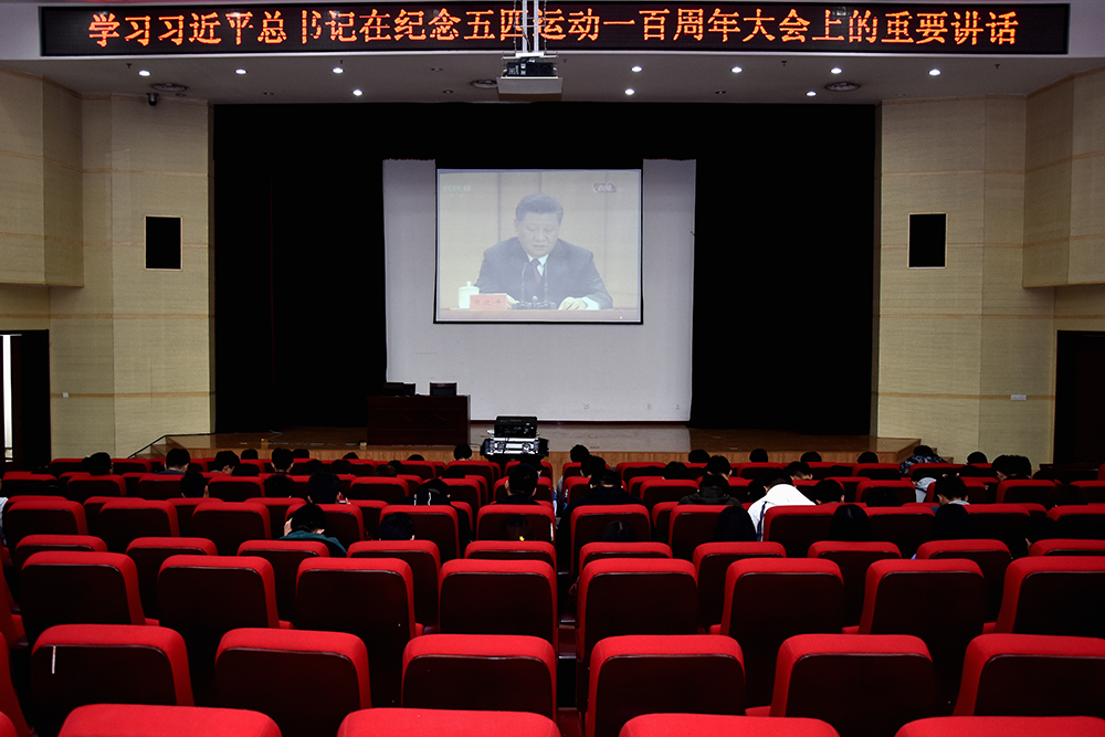 4月30日上午,紀念五四運動100周年大會在北京舉行,習近平總書記出席大會并發表重要講話。學院黨委書記王榮昌主持召開黨委理論學習中心組擴大會議,集中收聽收看紀念五四運動100周年大會并進行學習討論。學院團委組織無課學生干部和學生代表在圖書行政樓西報告廳收看大會直播,廣大師生在第一時間學習習近平總書記重要講話精神。